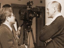Рольф Вельбертс беседует с корреспондентом японской телекомпании NHK Такао Дзюном.