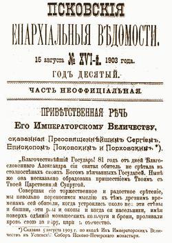 Впрочем, летом 1903-го некоторое праздничное оживление в Пскове наблюдалось. В начале августа город почтил своим посещением император Николай II. В связи с его приездом Псков был украшен триумфальными арками и воротами: около вокзала, понтонной переправы через Великую (на месте будущего Ольгинского моста) и пр.