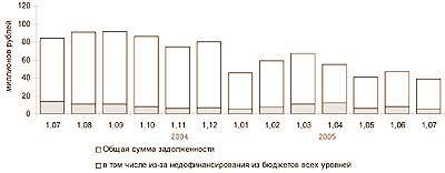 Из общей суммы просроченной задолженности по заработной плате по состоянию на 1 июля 2005 года задолженность за месяцы 2004 года составила 2,9 млн. рублей, за месяцы 2003 года и ранее – 1,2 млн. рублей.