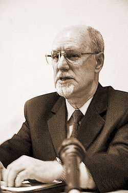 | Леонид Табаков с бережливостью детского врача продолжает заниматься в профсоюзах «терапией» и компромиссами. Фото: Александр Тимофеев. |
