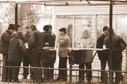 | Никто из этих людей не гарантирован от того, что в его стакане окажется смертельное пойло. Фото: Александр Тимофеев. |