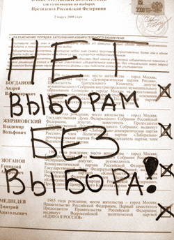 Избирателям, не желавшим участвовать в «кремлевском» сценарии президентских выборов, но пришедшим на выборы, оставалось лишь выносить с участков и портить бюллетени