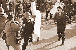 1 мая 1993 года в Москве состоялась демонстрация противников президента, которая была разогнана с помощью ОМОНа, причем руководители демонстрации в большинстве своем оказались неспособны влиять на собранную ими толпу, а толпа забрасывала милицию камнями и отнимала снаряжение. Среди демонстрантов было множество избитых (встречаются свидетельства о жертвах), трагически погиб также один сотрудник ОМОНа.