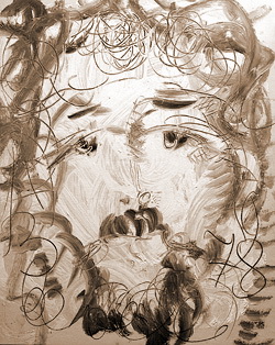 В первую очередь внимания требуют работы Анатолия Тимофеевича Зверева (1931 - 1986). Созданные им восемь графических и живописных листов украшают экспозицию. Человек, по внешним обстоятельствам бездомный и неприкаянный, подпольный и антисоветский, Зверев уже при жизни навсегда снискал мировую славу. Утвердившееся в искусствоведении сопоставление этого художника с В. Ван-Гогом устойчиво, глубоко и не случайно.