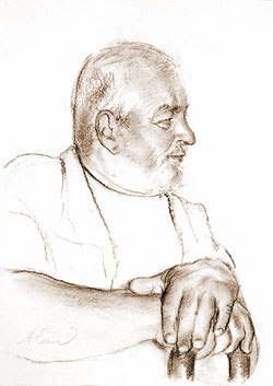 Но рисовальщице – содержательнее, сильнее – удалось поймать азартный огонь живых глаз: тот самый блеск неподдельного вдохновения, о котором я говорил выше, и который (как любовь и жизнь) нельзя ни с чем спутать, имитировать. А. Леон смогла выразить в образе Ямщикова духовный свет, который (если он есть в человеке) изнутри за десятилетия выстраивает по-новому архитектонику его лица, даёт наполненность взору.