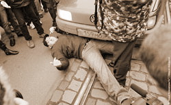 | Калининград, 30 января 2010 года. Жители западного анклава России готовы лечь под автомобиль российской «вертикали власти». Фото: Алексей Милованов |