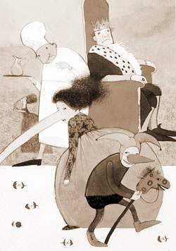 | Анне Линамяге-Лиийва. Французская сказка «Принцесса с длинным носом». Акварель, карандаш, 2008 г. |