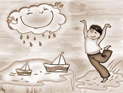 Выбрали самую широкую, с большим вытекающим ручьем лужу, вооружились прутиками и принялись гонять наши суда «на скорость», устраивать им штормы и кораблекрушения. Тут же из подъездов посыпалась соседская ребятня. Тоже соскучились по прогулкам и друг по другу. Ну, все. Маме тут делать нечего. В таких делах взрослые только мешают своими одергиваниями «Не лезь в лужу, не мочи ноги/руки».