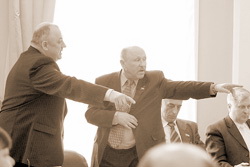 | Виктор Волынцев (справа) и Сергей Сенченков (слева) на сессии Великолукской городской Думы 2 марта 2009 года. Фото: Александр Сидоренко |