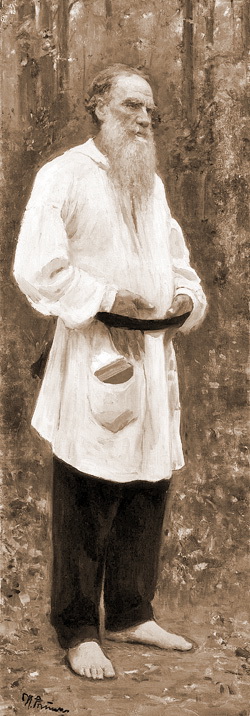| Картина И. Е. Репина «Лев Николаевич Толстой босой». 1901 г. |