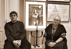 | Наталья Сергеевна Рахманина и Дмитрий Всеволодович Смирнов, супруга и сын В. П. Смирнова, на открытии выставки «Радость у Покрова». 21 января 2011 г. Фото: Лев Шлосберг |