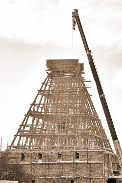 | Шатер Власьевской башни в процессе восстановления. Январь 2011 г. Фото: Лев Шлосберг |