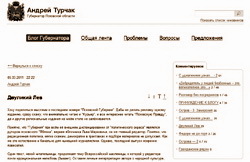 Вечером 5 марта губернатор Псковской области Андрей Анатольевич Турчак, опубликовал в своем блоге сообщение (цитируем полностью в соответствии с оригиналом): «05.03.2011 22:22. Андрей Турчак. Двуликий Лев. Хочу поделиться мыслями о последнем номере «Псковской Губернии». Дабы не делать рекламу одному изданию, сразу скажу, что внимательно читаю и «Курьер», и все интереснее читать «Псковскую Правду», да и другие региональные издания на моём столе не залёживаются.
