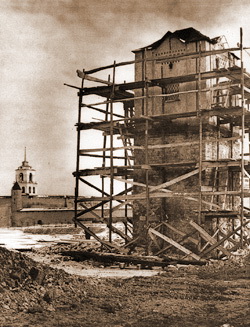| Спасение Анастасиевской часовни. Подготовка к переносу. 1970 г. Фото Михаила Ивановича Семенова. |