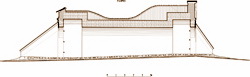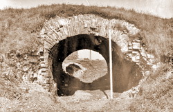 Когда ровно через 10 лет (1998 г.) реставраторы вернулись к западным воротам крепости [ 2 ], то весь верхний слой насыпи, вместе с гидроизолирующим слоем, был снят, а проще сказать – уничтожен безграмотными подготовительными работами.