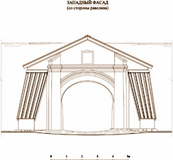 | Проект реставрации западных ворот. Фасад со стороны равелина (наружная сторона крепости). Архитектор-реставратор В. Никитин. 2011 г. |