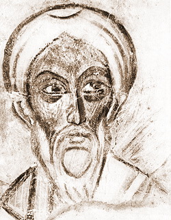 Фрески собора Рождества Богородицы Снетогорского монастыря. Сцена Страшного Суда. Святитель. Фрагмент. XIV век. Псковская школа монументальной живописи. Фото Б. С. Скобельцына.