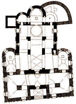 | План собора Рождества Богородицы на 1749 г. Реконструкция В. Е. Никитина. |