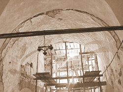 | Собор Рождества Богородицы. Реставрационные леса в западной части центрального нефа. |