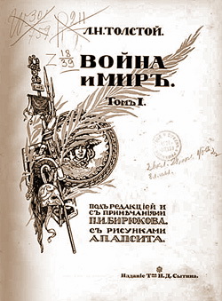 | К 100-летию Отечественной войны 1812 года товарищество И. Д. Сытина выпустило в свет специальное издание «Войны и мира» Льва Толстого. |